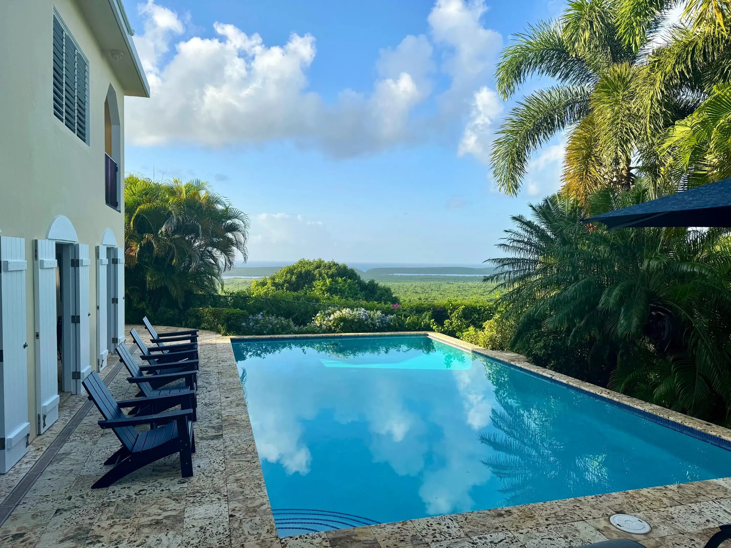 Villa Destino is a beautiful, private vacation rental in Vieques, Puerto Rico, with a stunning 30 foot swimming pool and a view that will take your breath away. Both of these are just a step outside each of the 5 french doors that lead to the beautiful pool and tropical landscaping. Book your stay at Villa Destino and make memories that will last a lifetime.